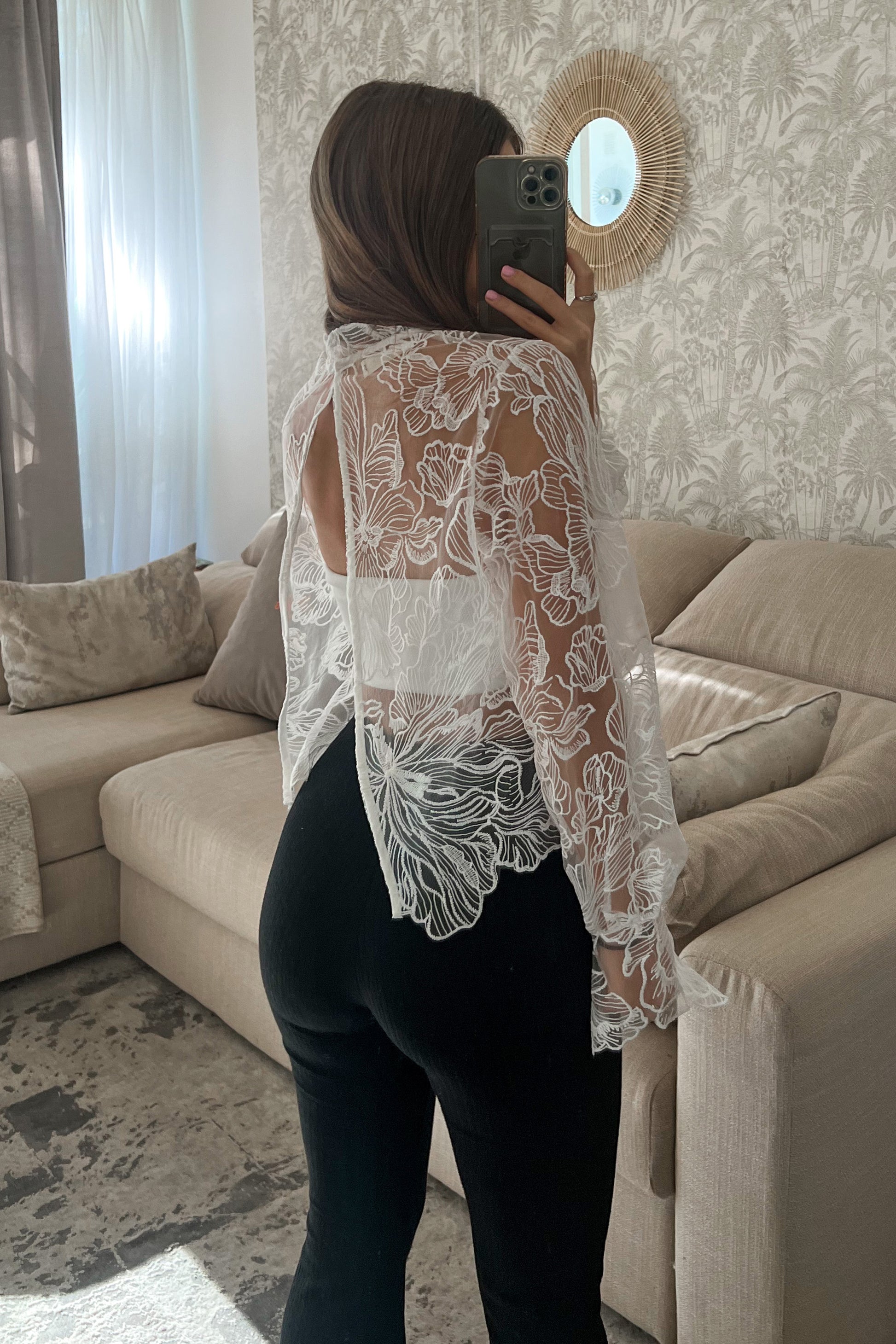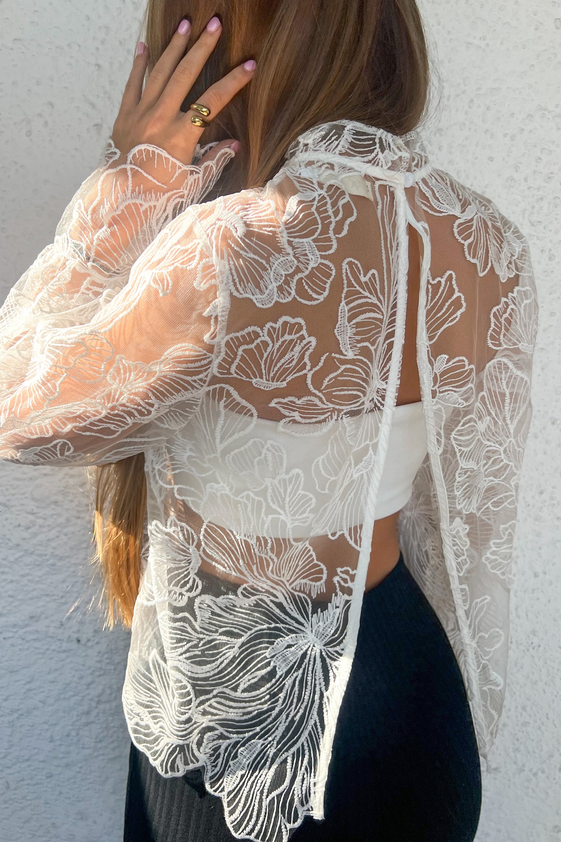 ❁ Blouse brodée avec dos nu, blanche