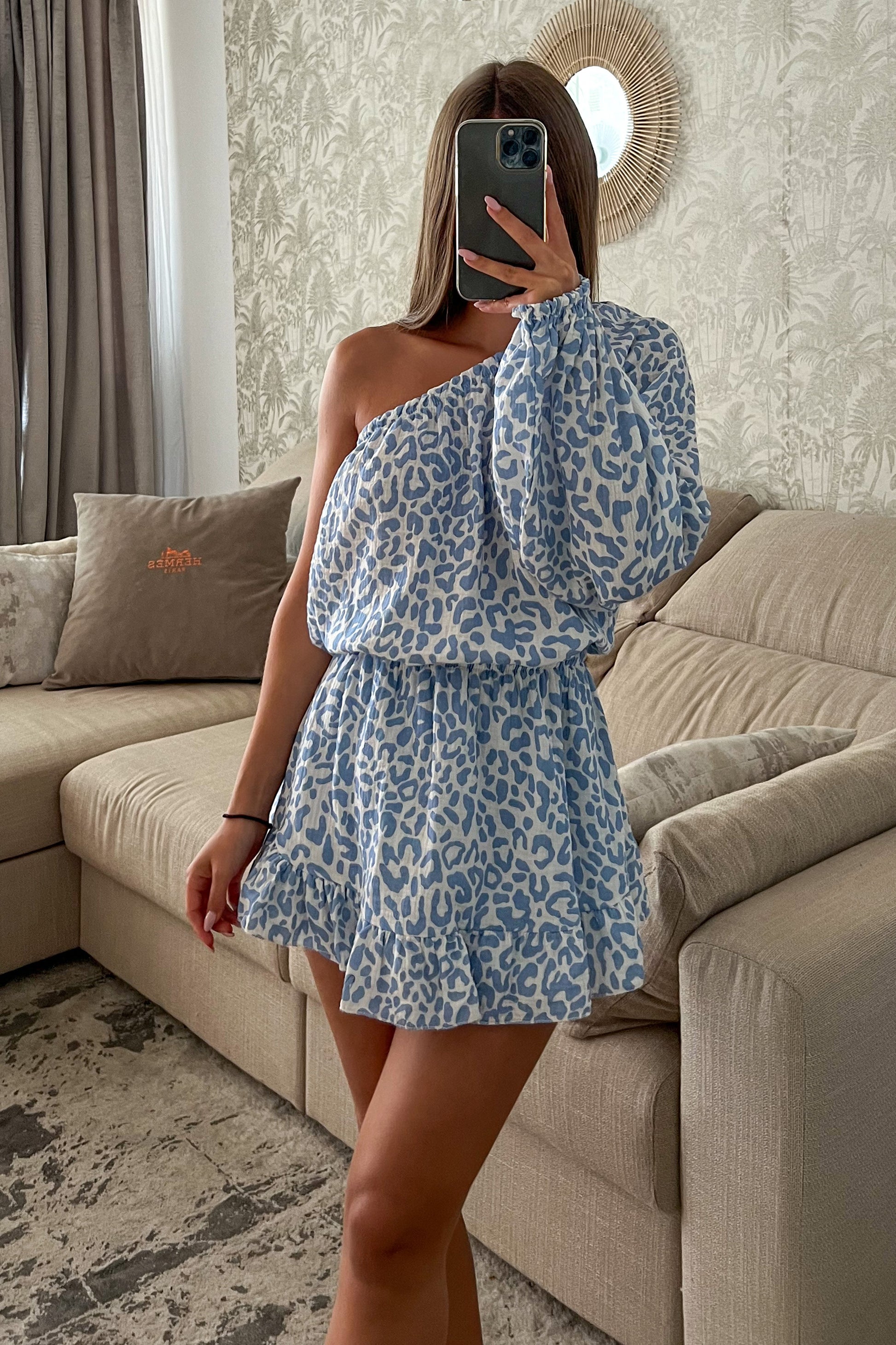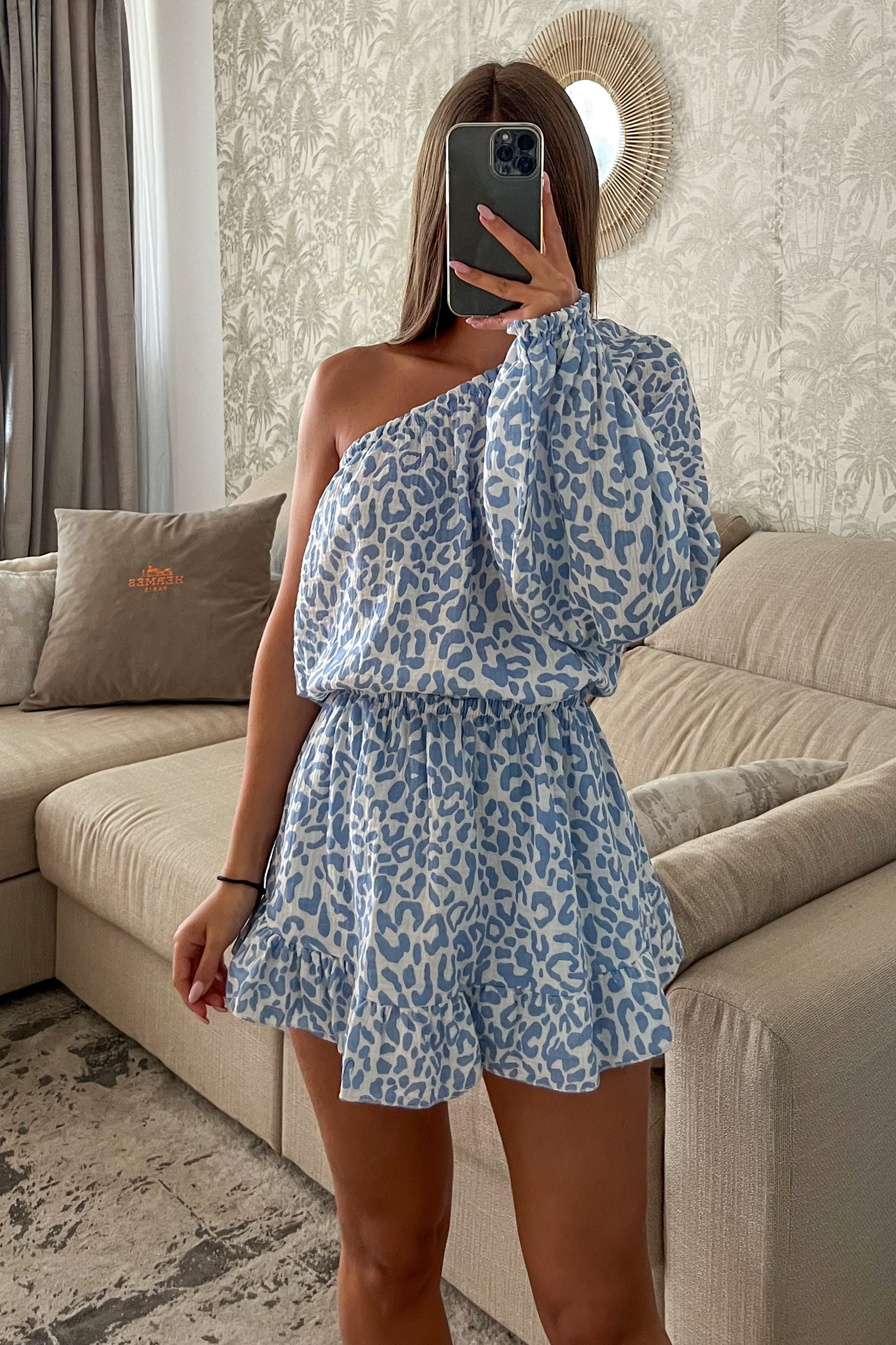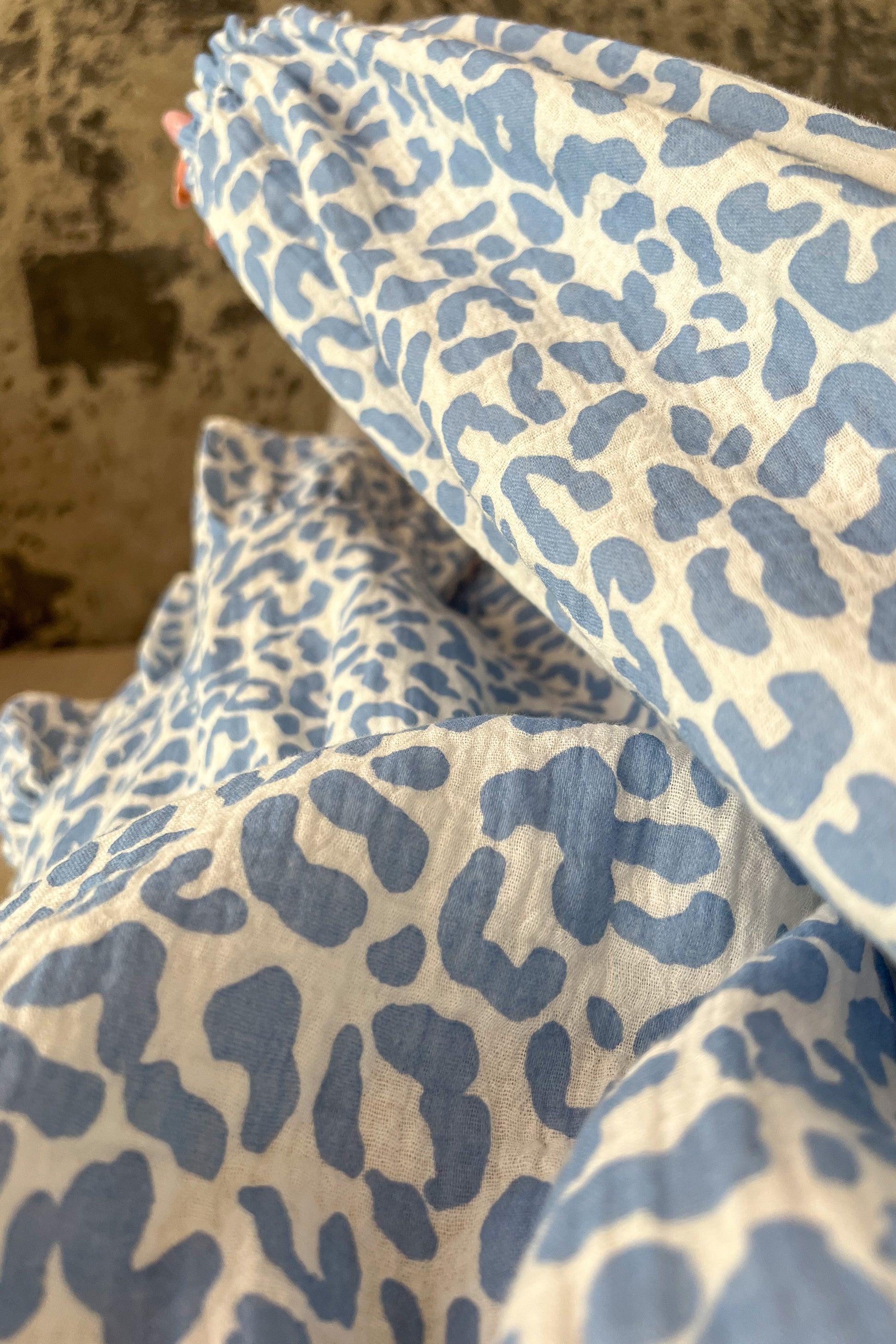 La combishort parfaite : un gaze de coton confortable et léger, la beauté d'une jupe mais le confort caché du short, et un motif léopard estival bleu tout simplement magnifique ♡