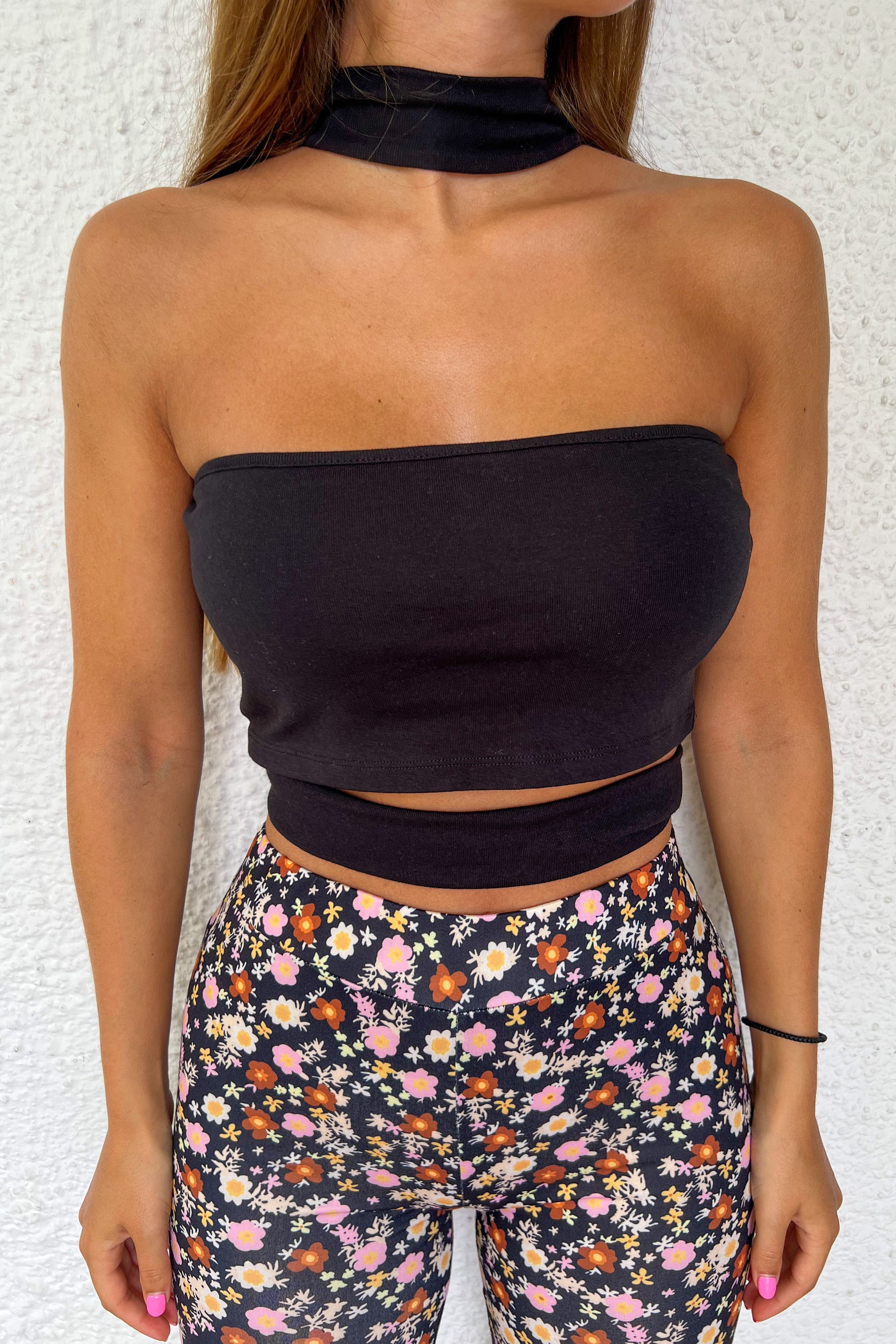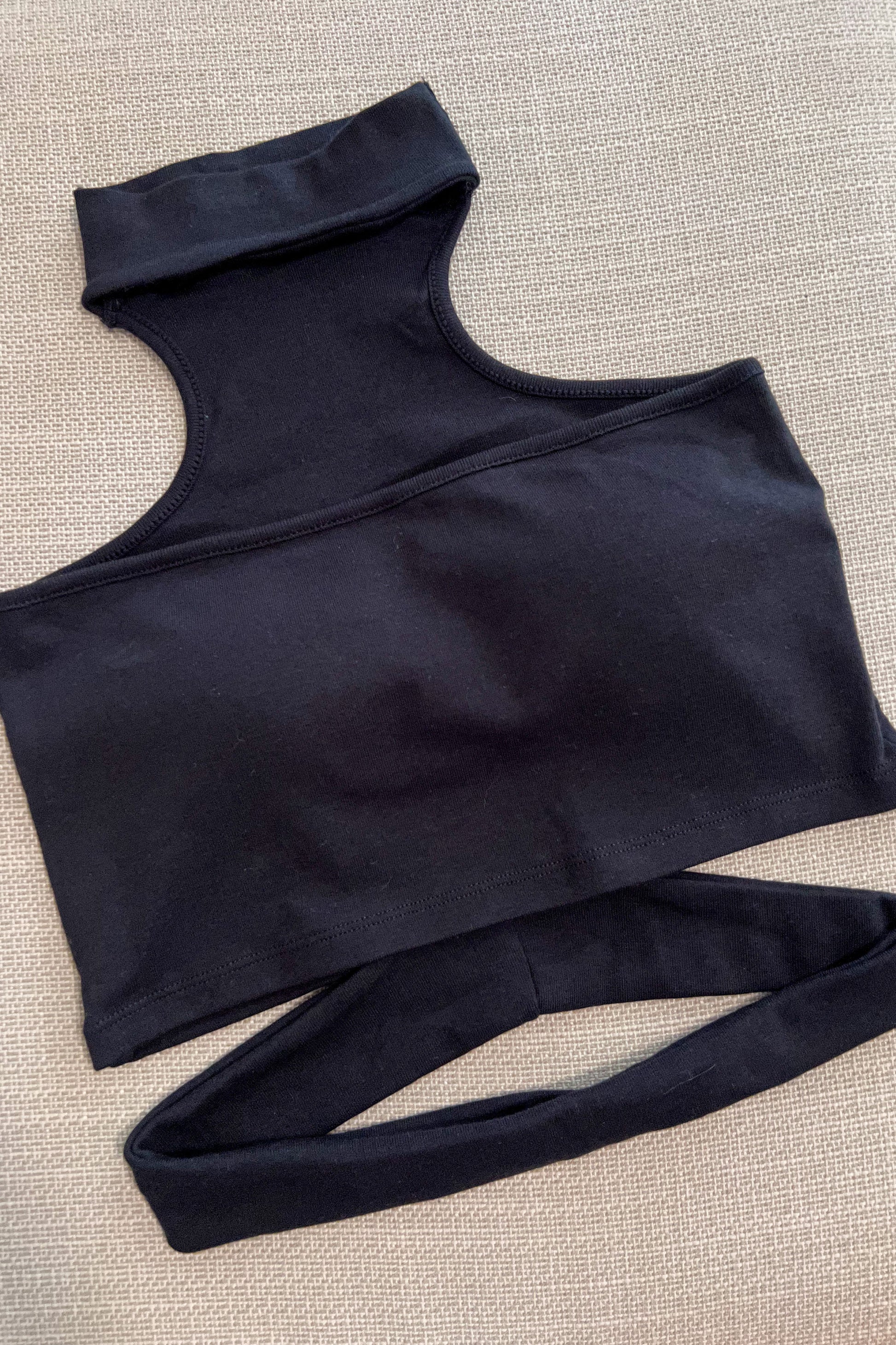 TIPS taille : convient pour du S, M et petit L. Convient aussi pour du XS (taille du modèle) mais en fonction de votre tour de taille, la bande de tissu du dessous pourrait être trop petite (en cas de très petit tour de taille). Elastique au niveau de la poitrine.