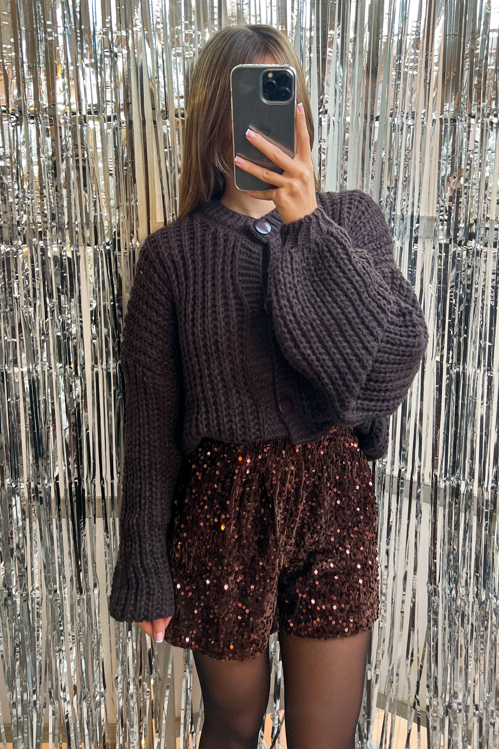 Avec notre short pailleté brun pour casser le look, ou au quotidien, ce pull est tout simplement sublime (et il tient biiiien chaud) ♡