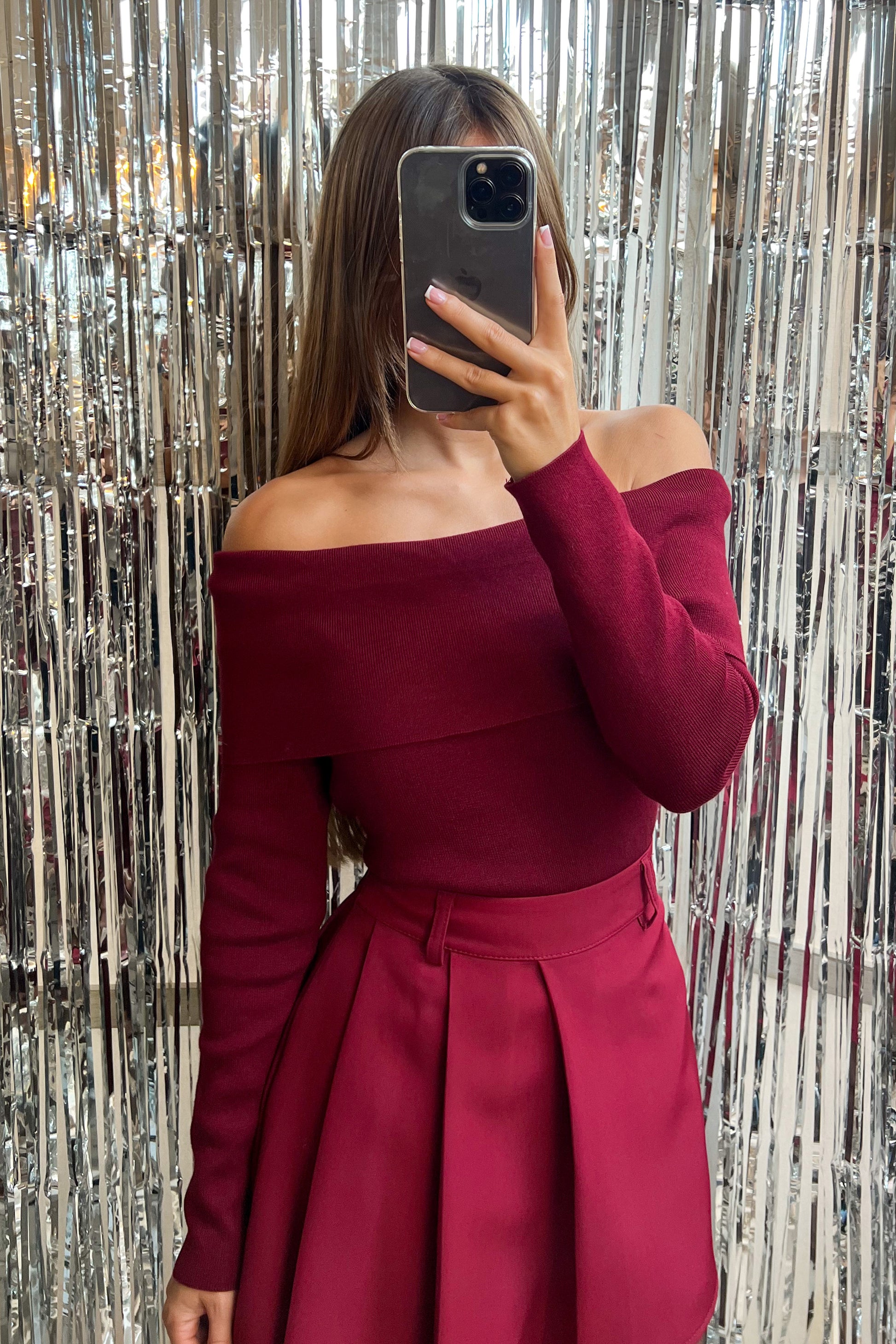 Le haut parfait pour te mettre en valeur, que ce soit pour les fêtes ou pour une soirée d'hiver ♡ Parfait avec notre jupe short écolière bordeaux.
