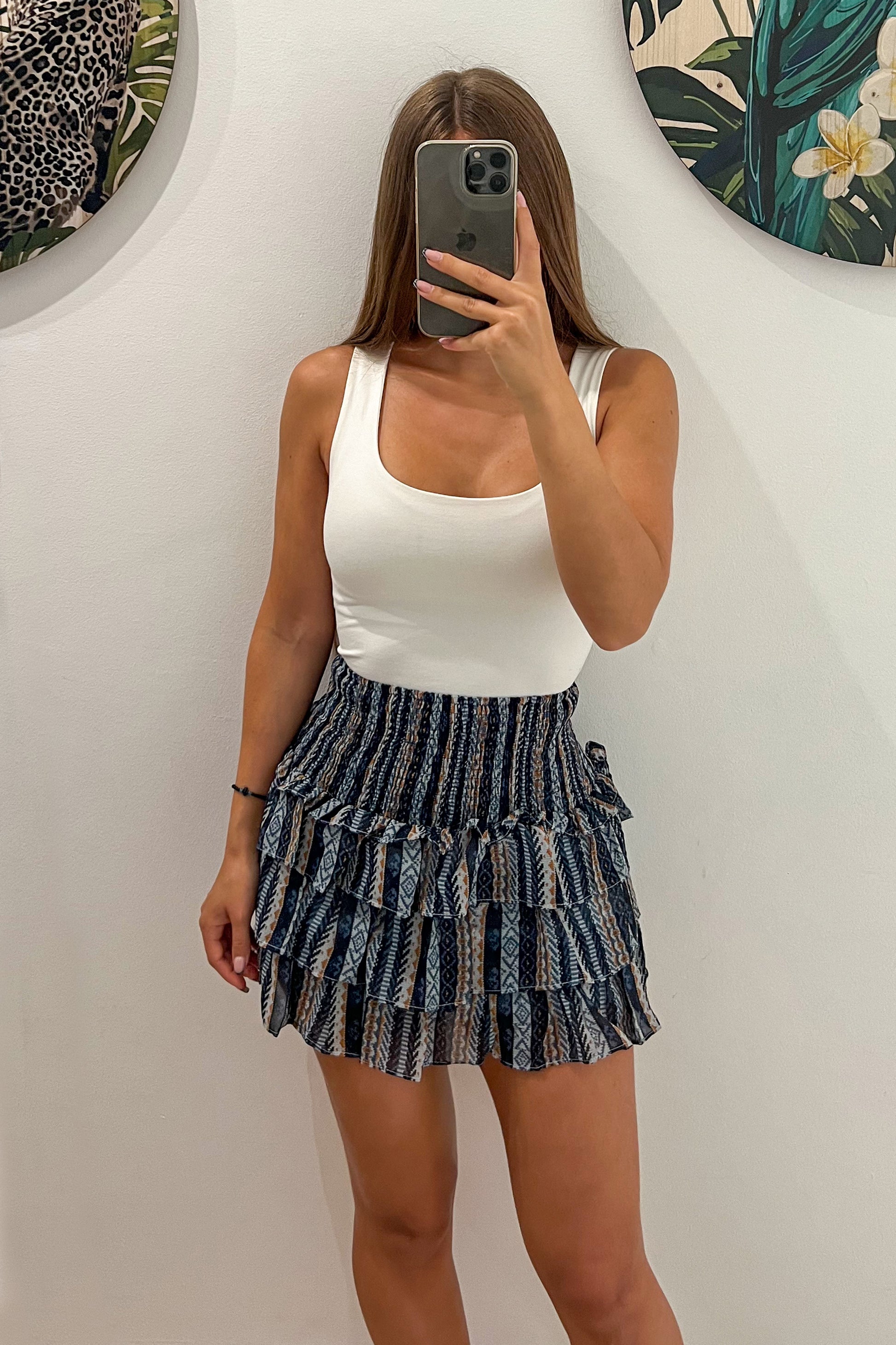 Cette jupe fluide juste parfaite pour l'été : avec notre top bandeau bleu ou un débardeur blanc, summer vibes assurée.