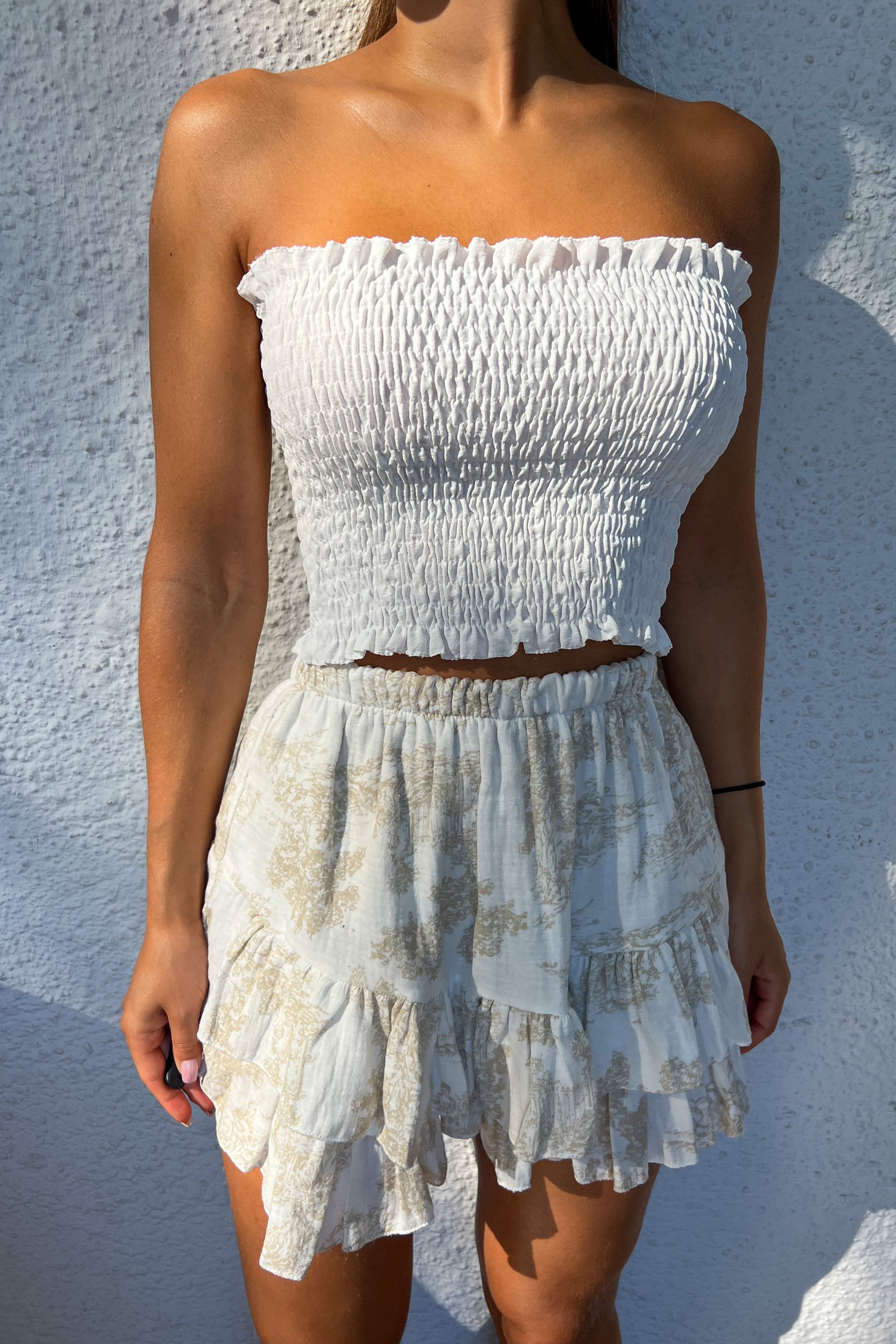 Cette jupe fluide juste parfaite pour l'été : avec notre top bandeau blanc ou un débardeur blanc, summer vibes assurée.