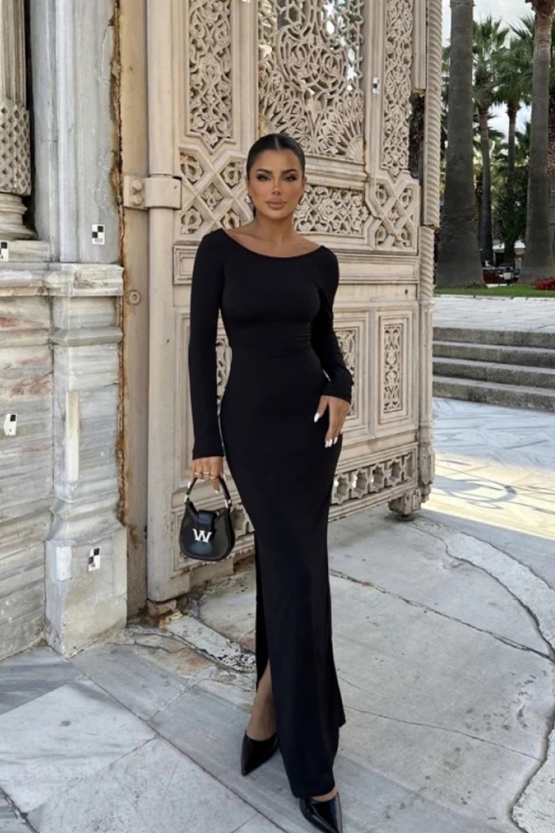 Une robe aux apparences simples mais qui se révèle sublime par ce dos nu et sa fente sur le côté ♡