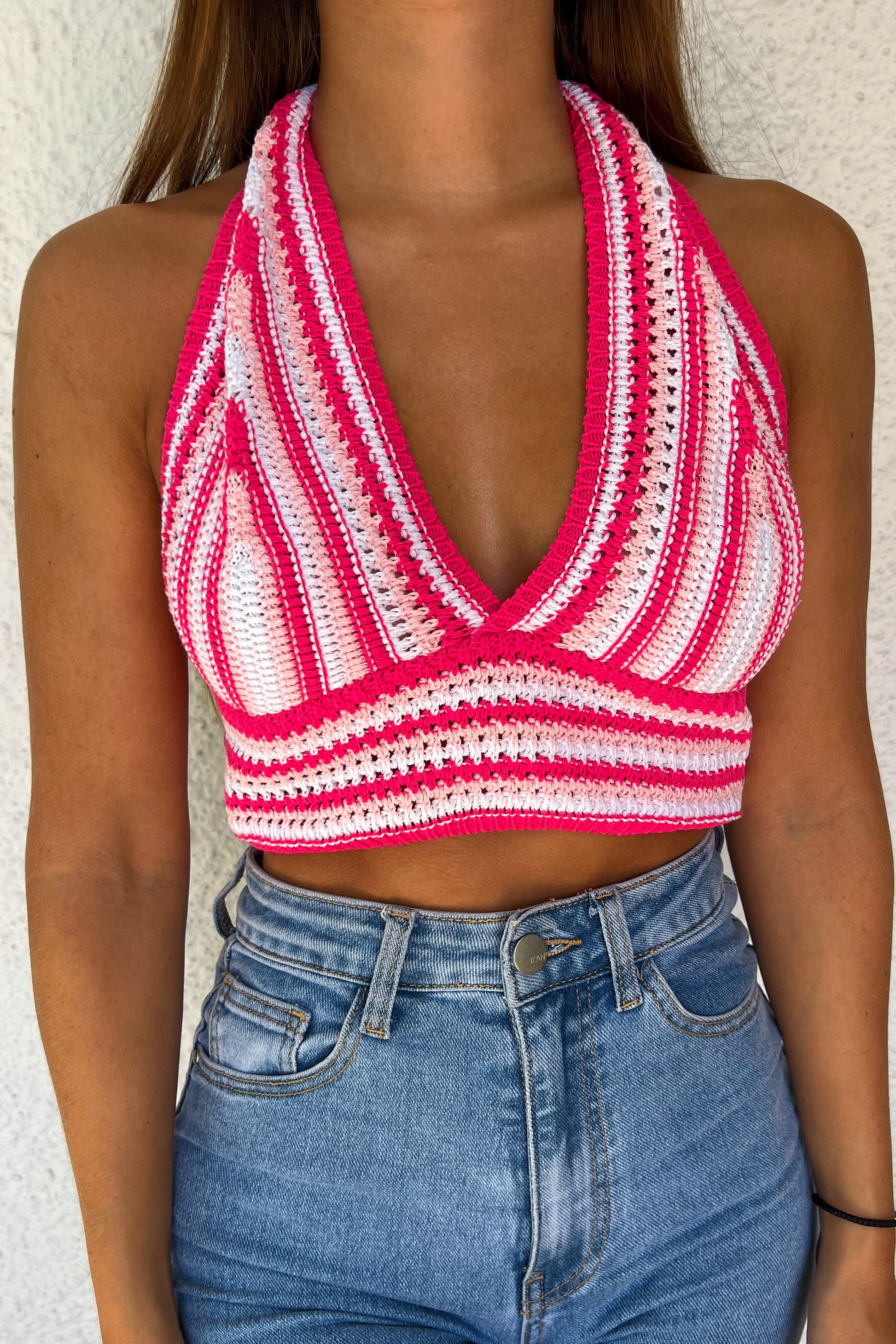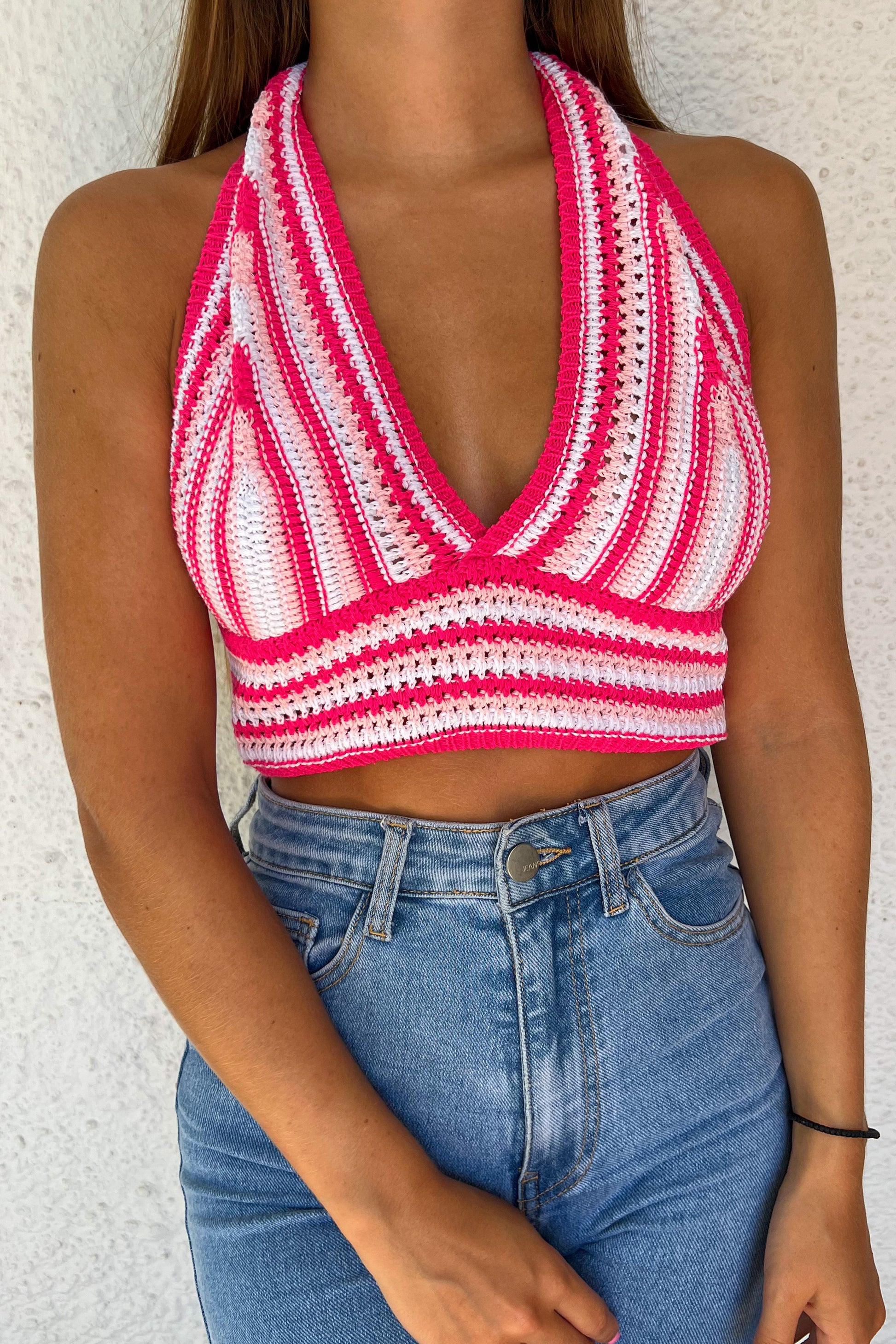 ❁ Top en crochet rose