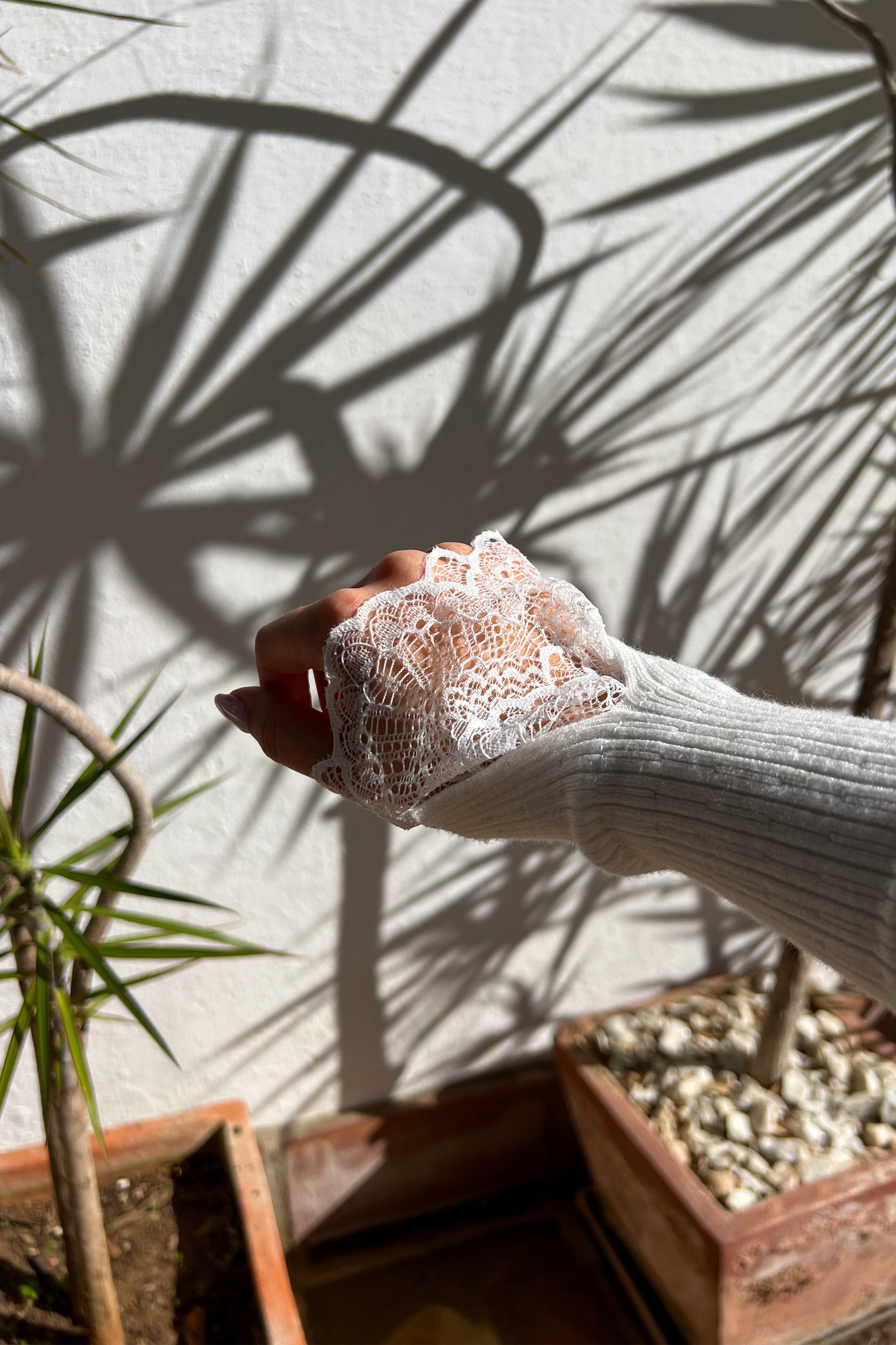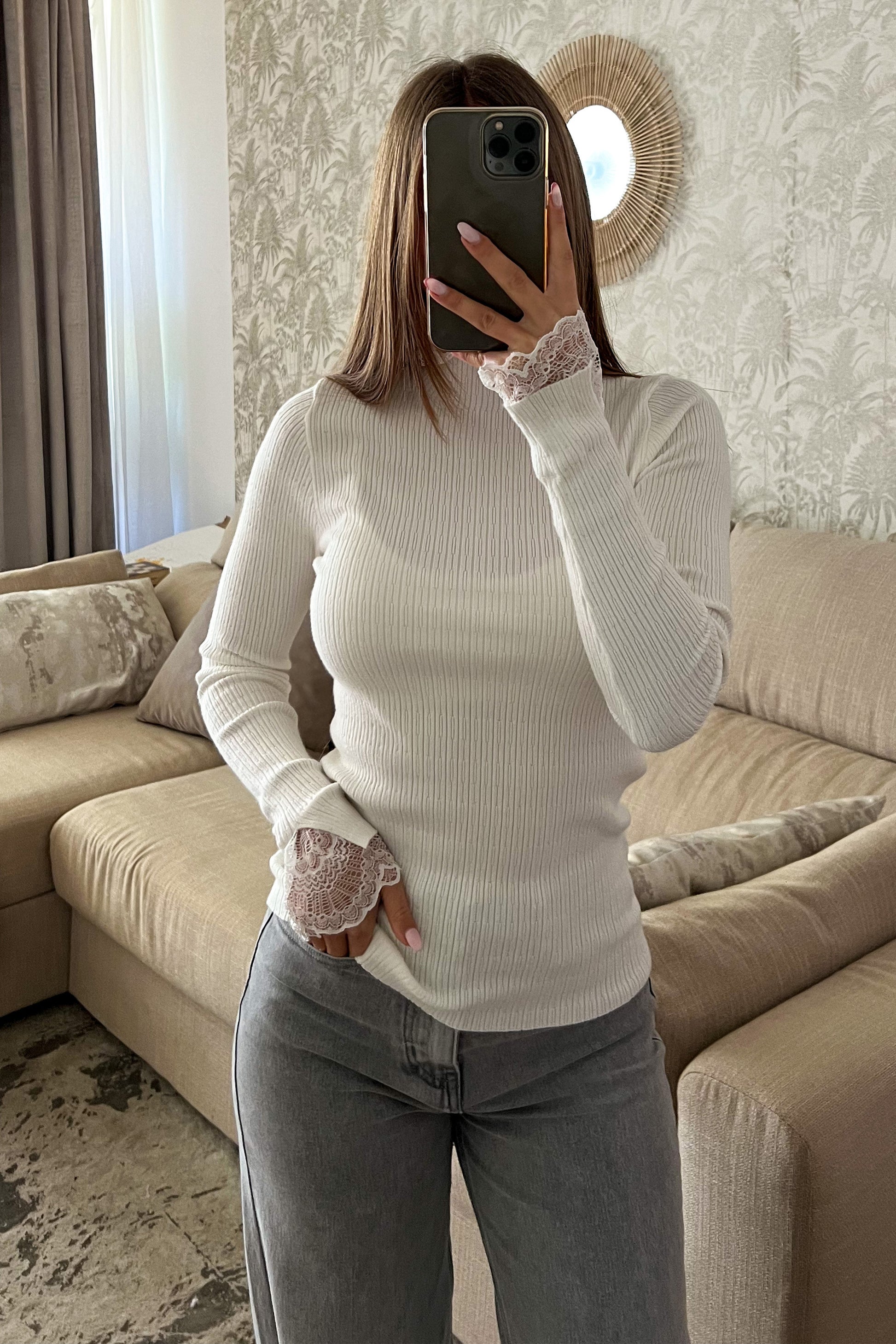 ❁ Sous-pull/blouse blanche, avec dentelle au col et aux manches