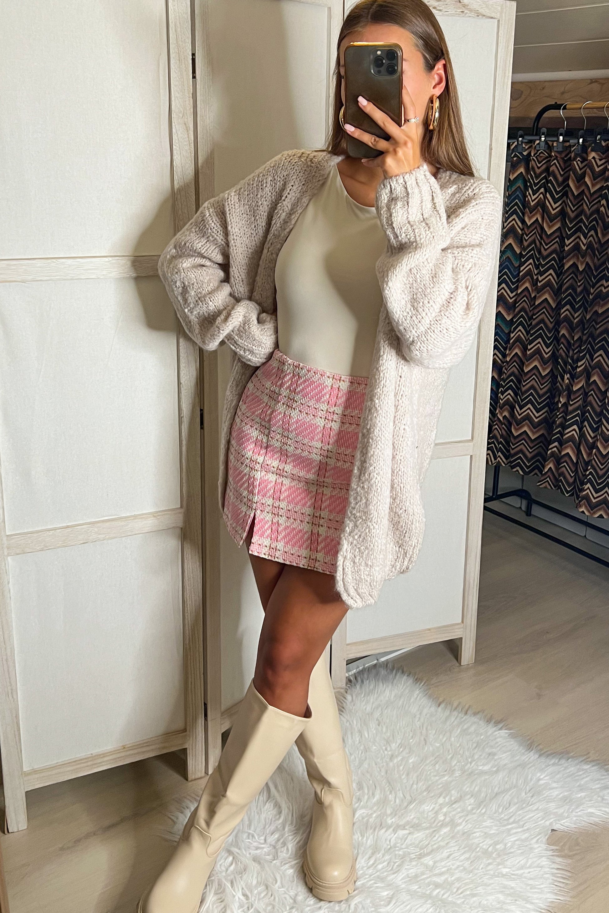 Le modèle porte une taille S et mesure 1m60 pour 50 kg.
