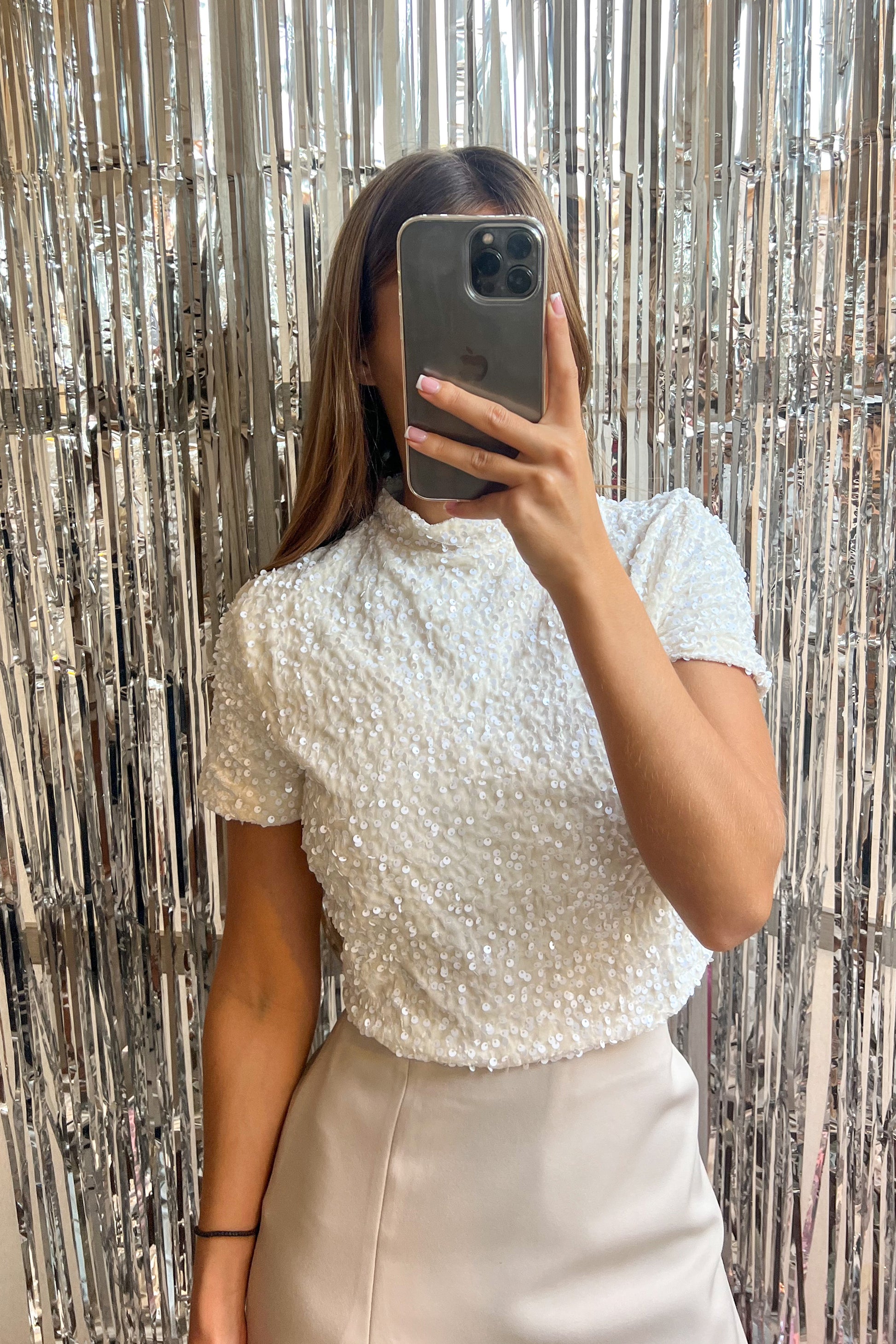 ❁ Blouse à sequins crème