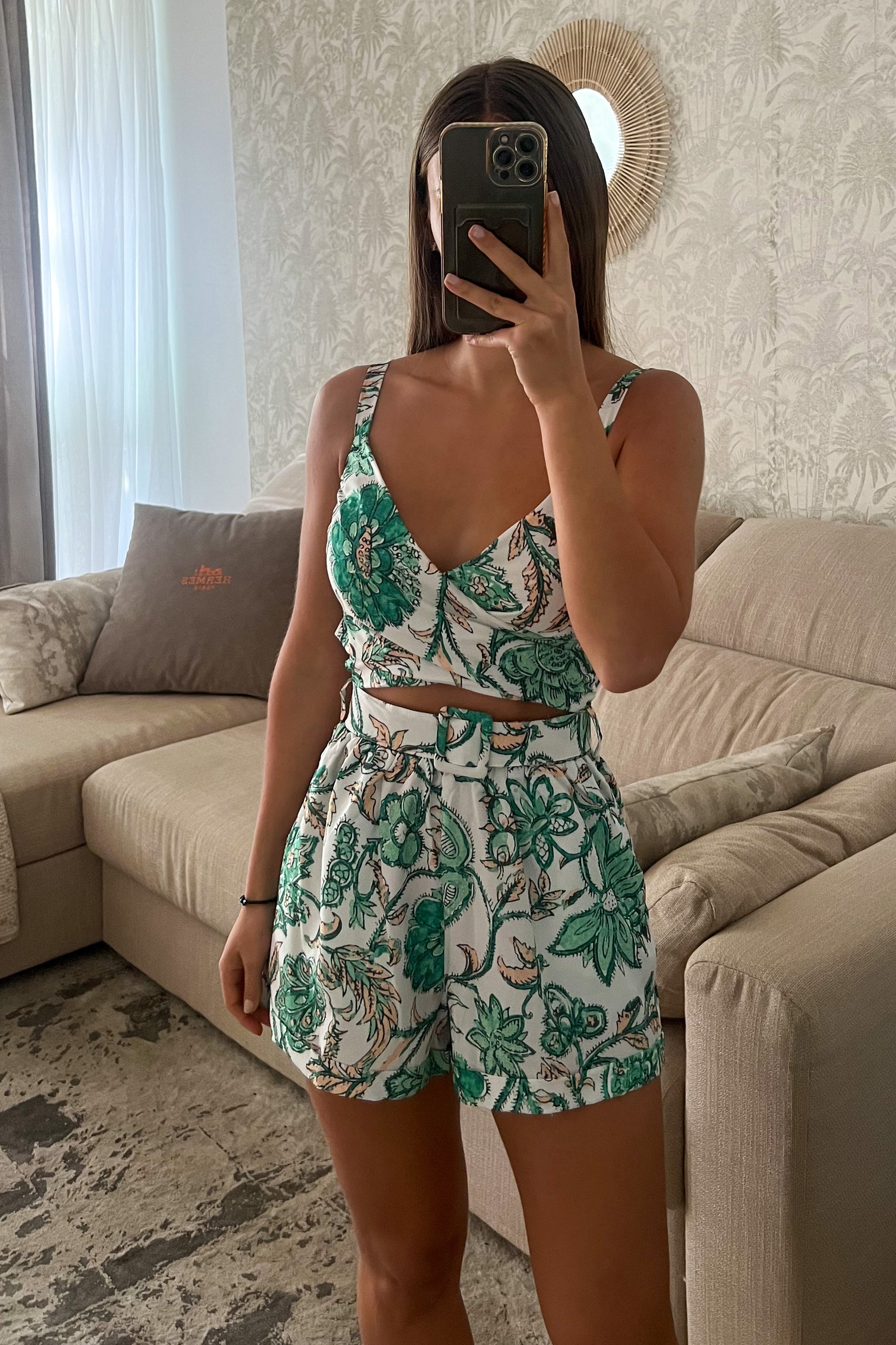 In love de cet ensemble : son motif, ses couleurs, son côté ultra chic mais aussi super pratique. Il peut se porter aussi bien ensemble que séparément (le short avec un top blanc, le top avec un jeans, ...) ♡