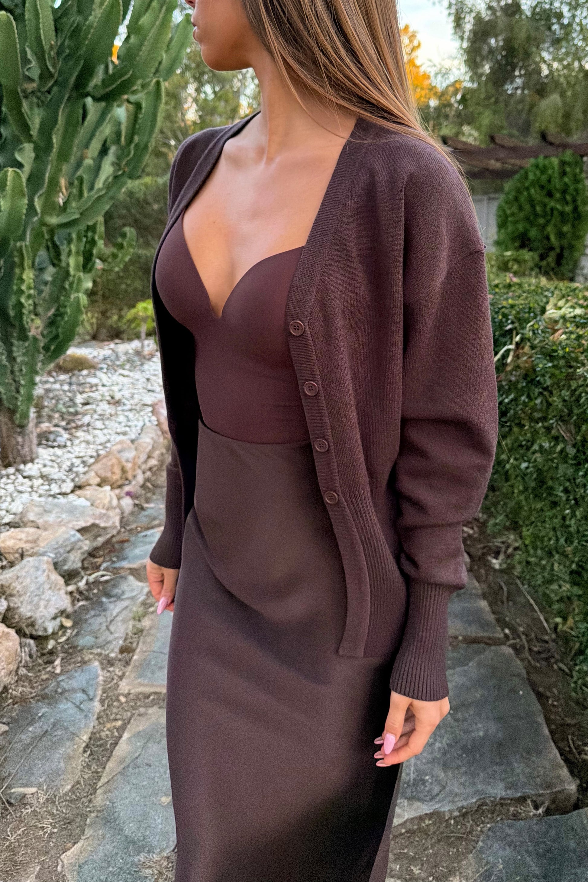 Cintré, doux et chic : le cardigan brun qui transforme un look simple en essentiel stylé ♡