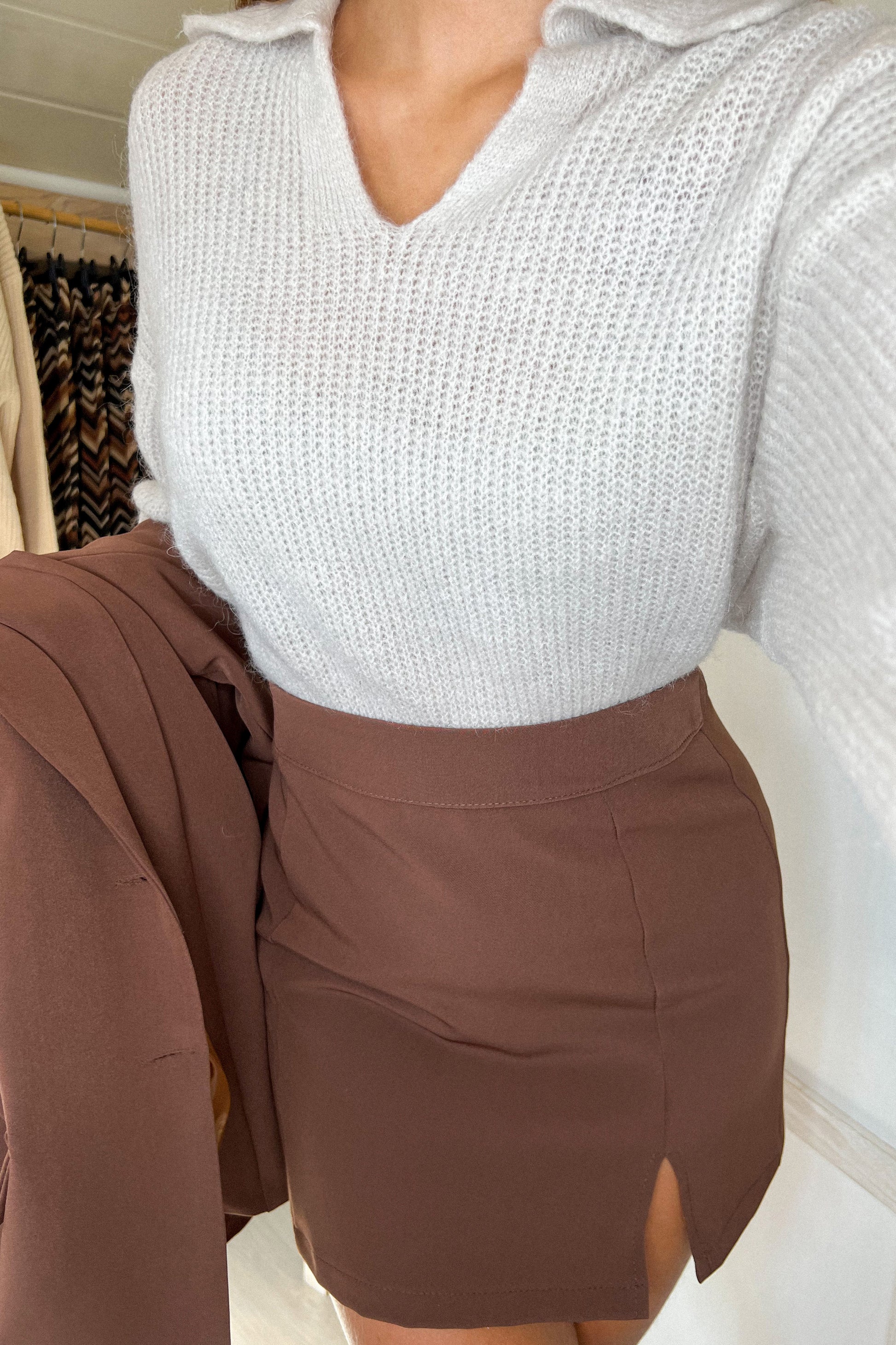 ❁ Jupe brune avec mini fente (tirette derrière)