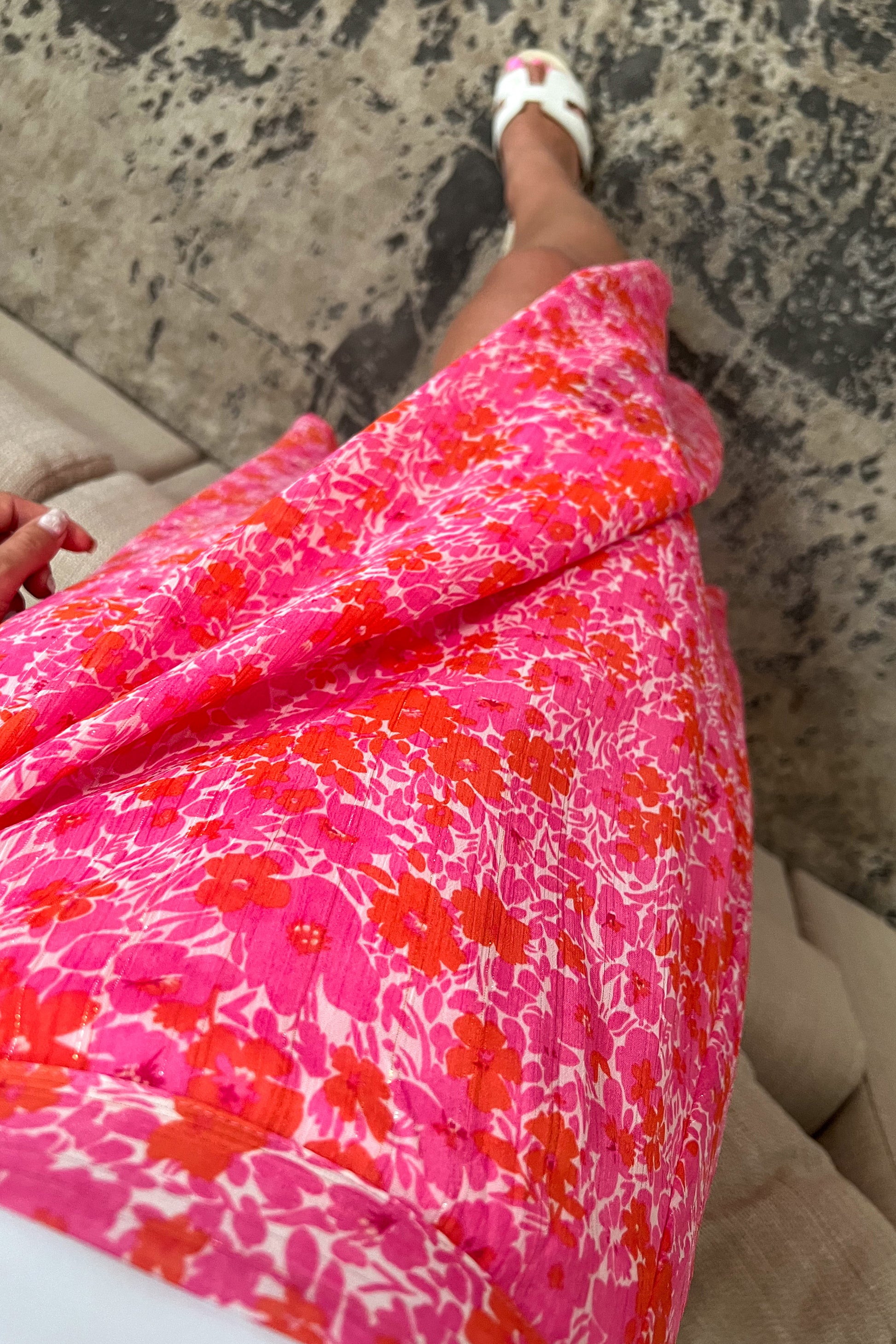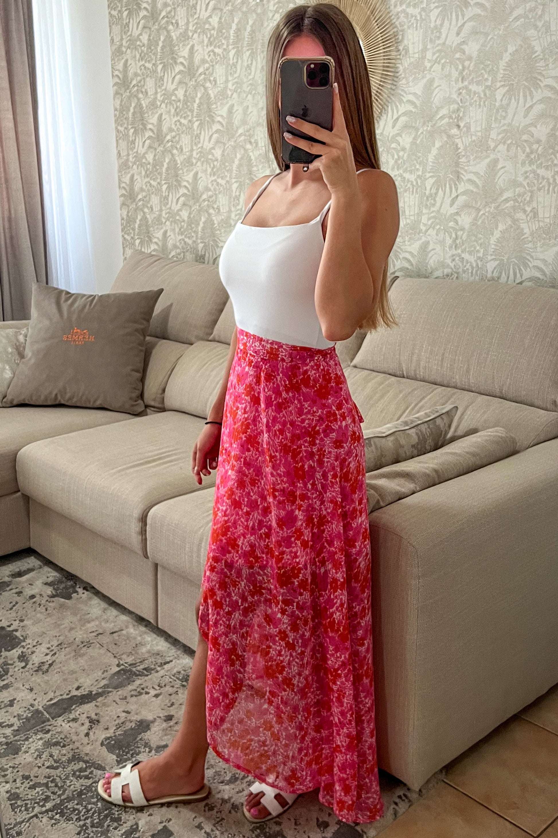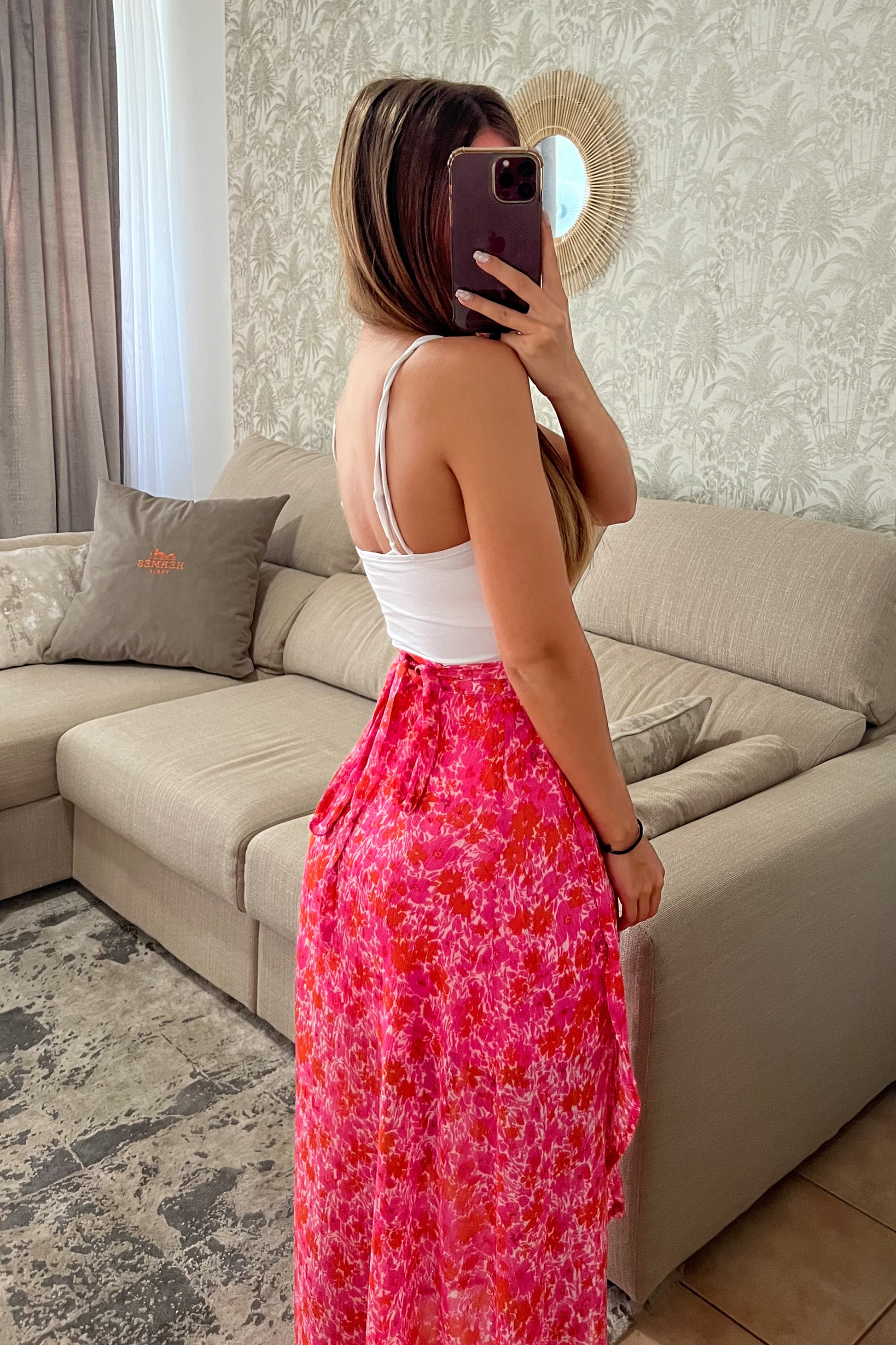 Cette superbe jupe longue en tissu fleuri rose est d'une qualité exceptionnelle et dotée d'une élégante fente. Cette pièce allie style et raffinement, vous offrant une tenue sophistiquée, que ce soit pour une occasion spéciale ou pour une journée ordinaire ♡