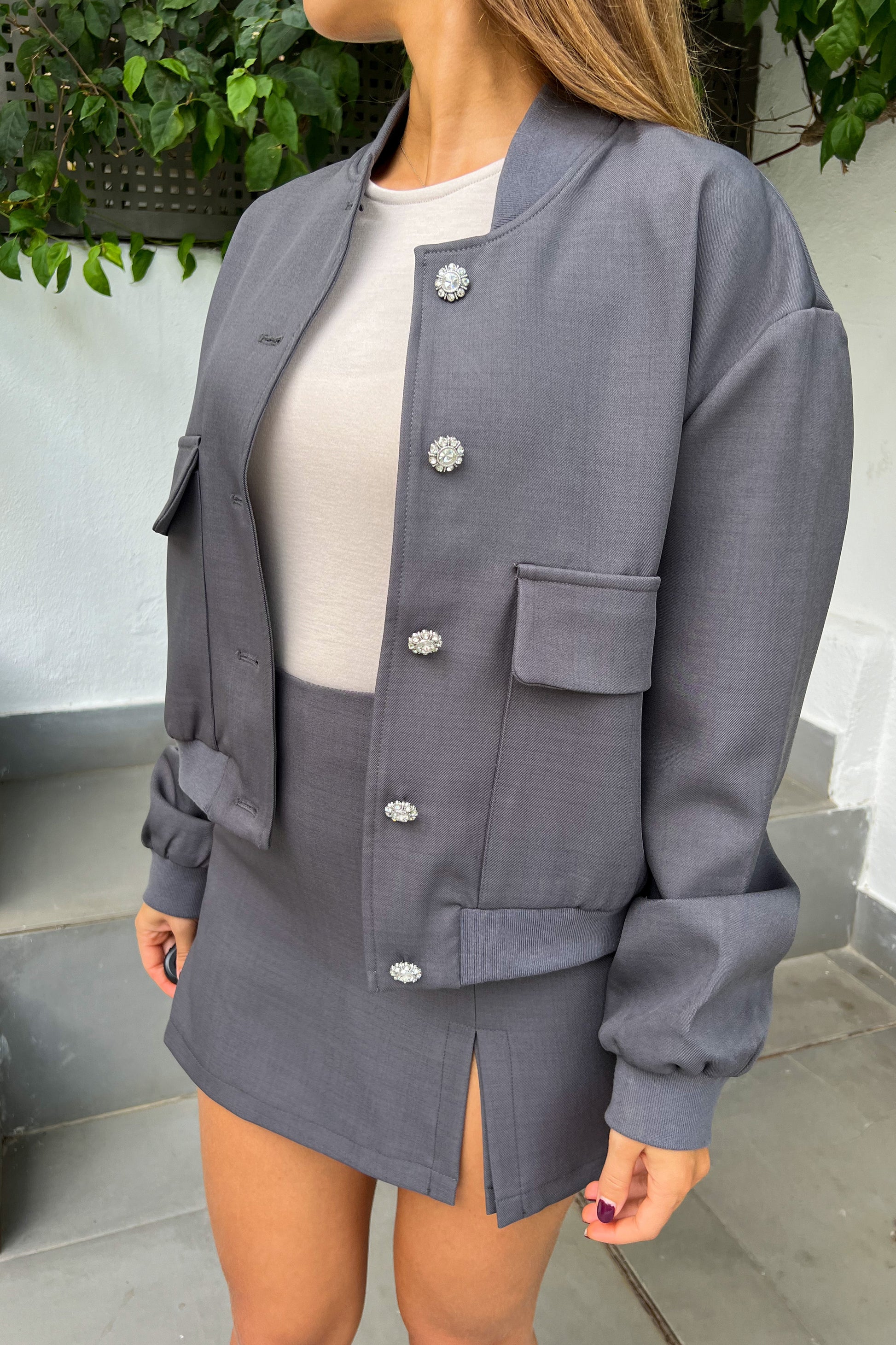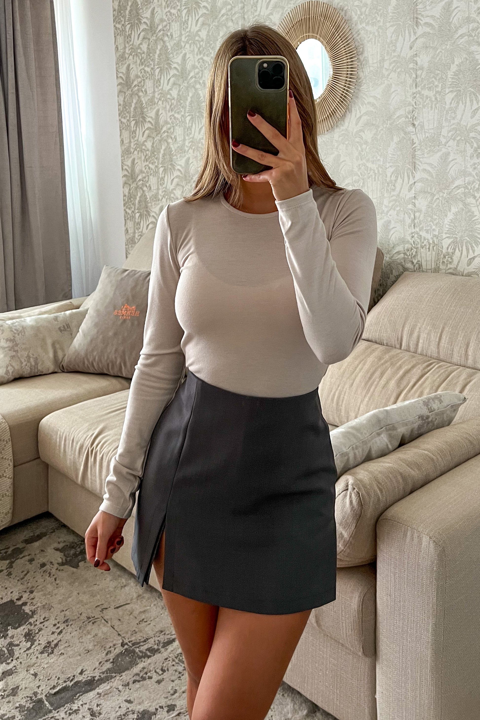 Une jupe short à la coupe ultra flatteuse grâce à sa légère fente. Parfaite pour tous vos outfits d'hiver avec un gros pull par dessus ou notre veste bomber assortie ♡