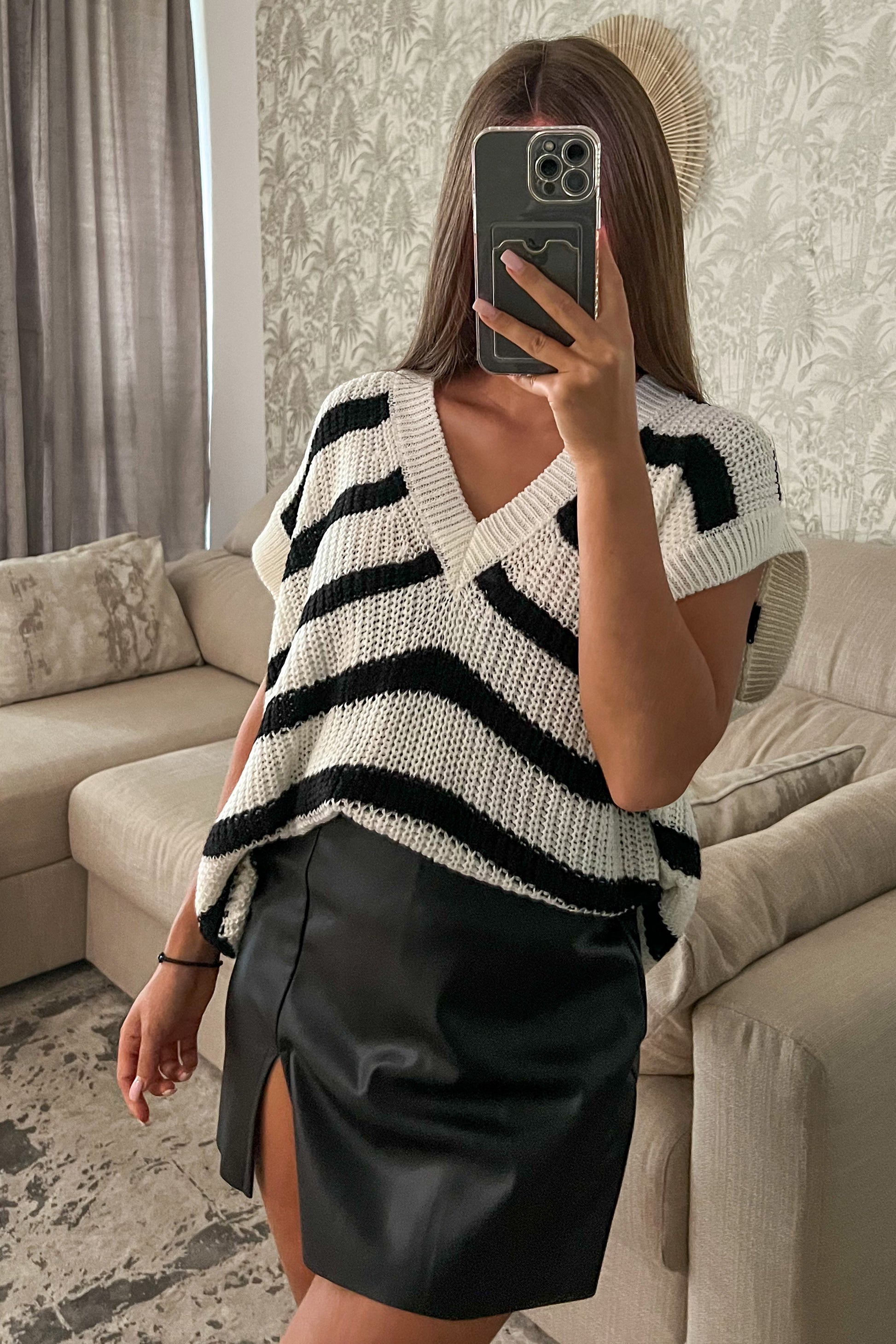 Le modèle porte une taille S et mesure 1m60 pour 50 kg.