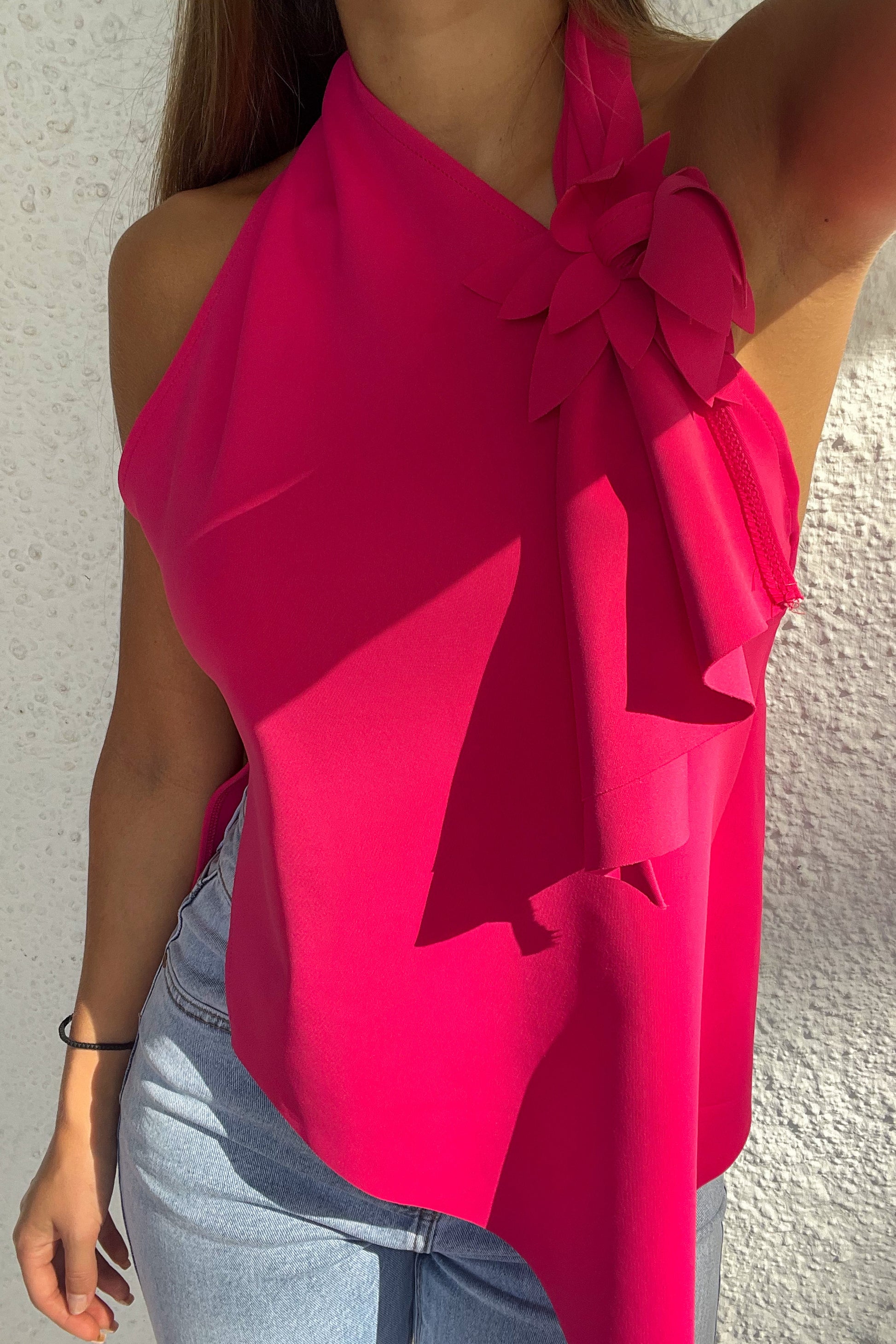 Un haut si élégant et original, tant par son côté asymétrique que son sublime détail en forme de fleur.
