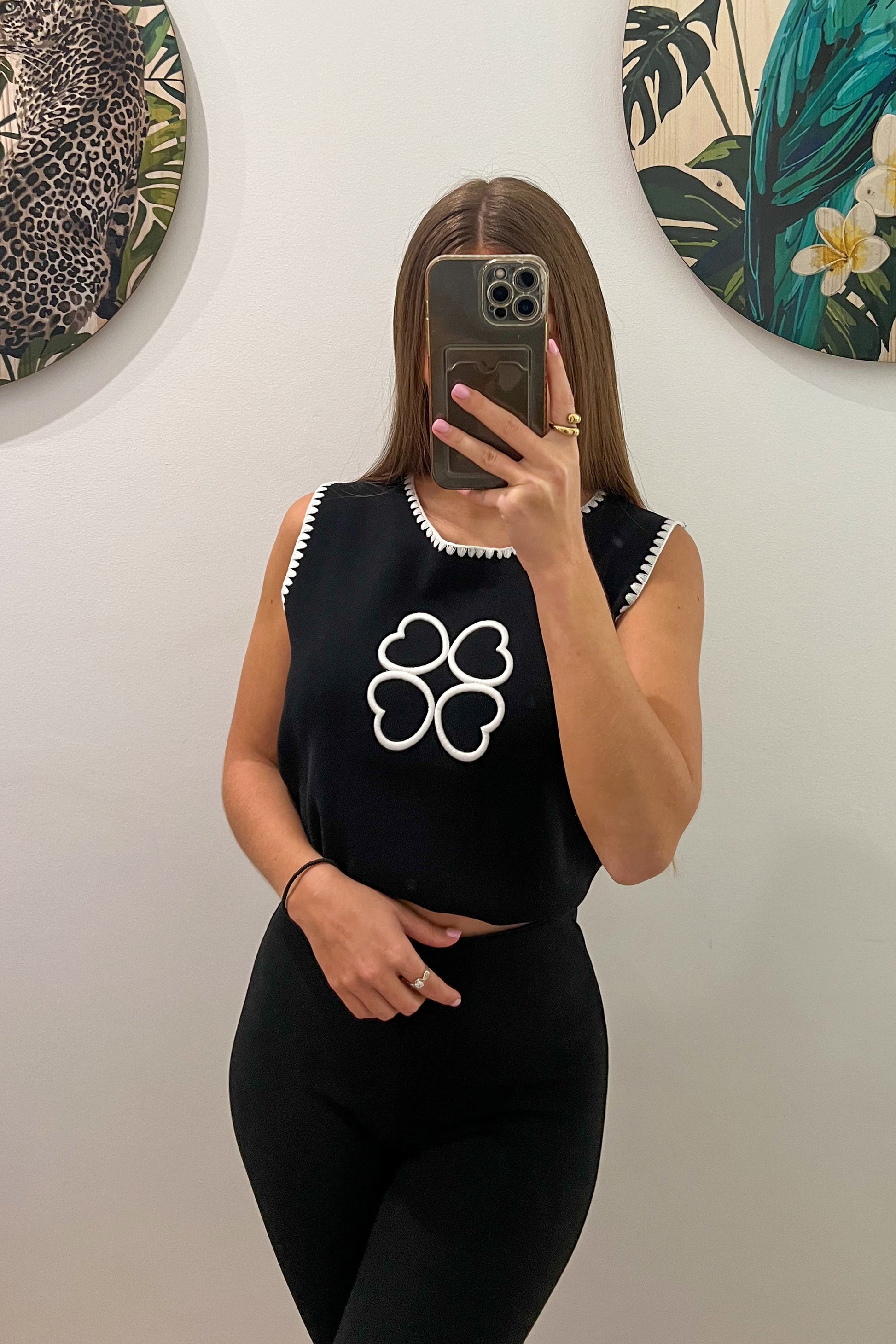 ❁ Top noir avec coutures blanches