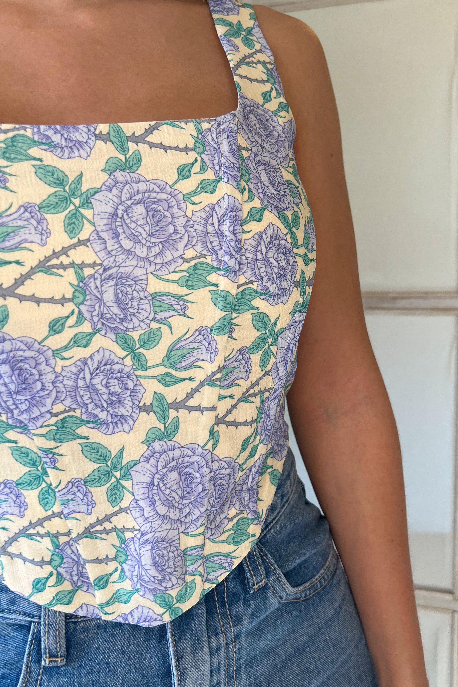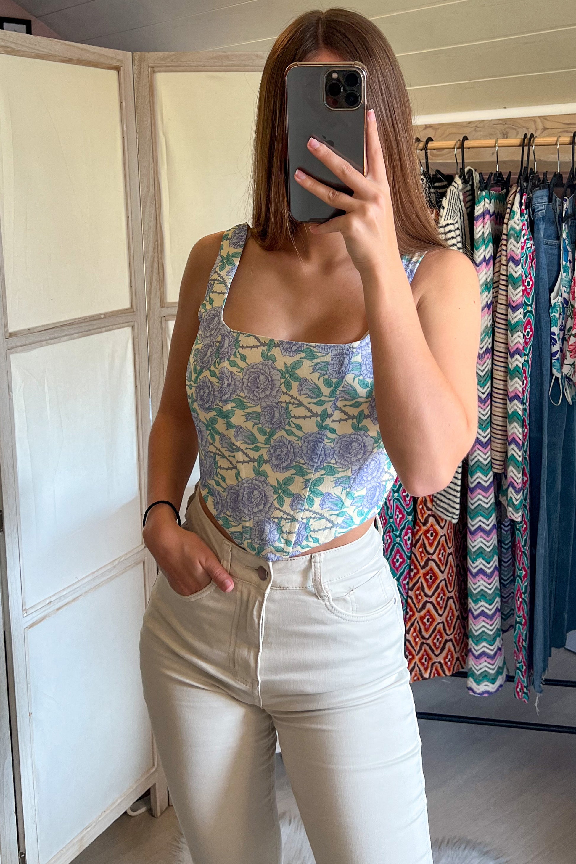 Vous cherchez un haut qui vous fera sentir on fleek et audacieuse ? Avec son motif printanier aux couleurs vives, ce haut effet corset est parfait pour ajouter une touche de gaieté à vos outfits. Pour une journée ensoleillée ou pour un événement spécial, ce crop top est un vrai coup de cœur assuré. Alors, qu'attendez-vous pour l'ajouter à votre collection de printemps ? ♡