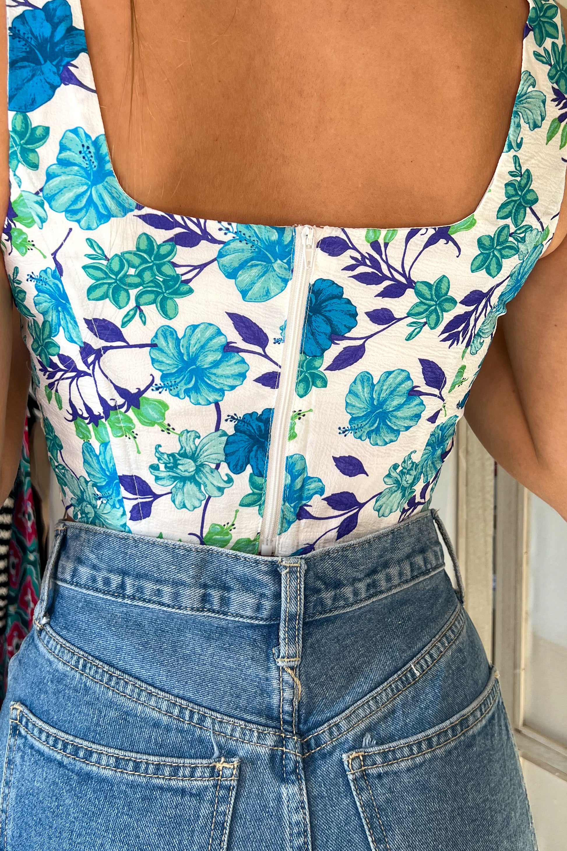 Top SUZANNE fleurs bleues